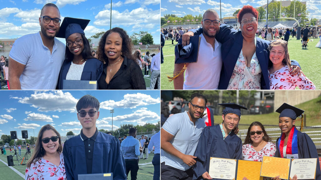 In Boston, mentors Stephanie and Darryl showed up to cheer on their Malden High School grads! Check out the clever cap design from Imani below.