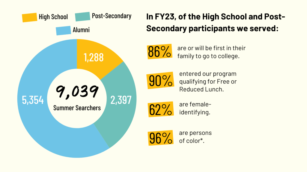 Note:The presented data reflects Summer Search’s 2023 Fiscal Year (“FY23”), which is October 1, 2022 – September 30, 2023.