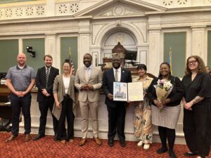 Pictured above from left to right: Shawn Bradley, Theo Molloy, Cho, Council President Kenyatta Johnson, Councilmember Anthony Phillips, Muffy Castellano, Orneno Wright-Threats, and Jillian Lacey (not pictured, Imani Palmer)