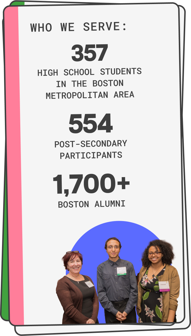 Founded in 1996, Summer Search Boston is proud to serve more than 2,500 young people from the communities of Boston, Malden, Chelsea, Cambridge, Everett, and Lynn.