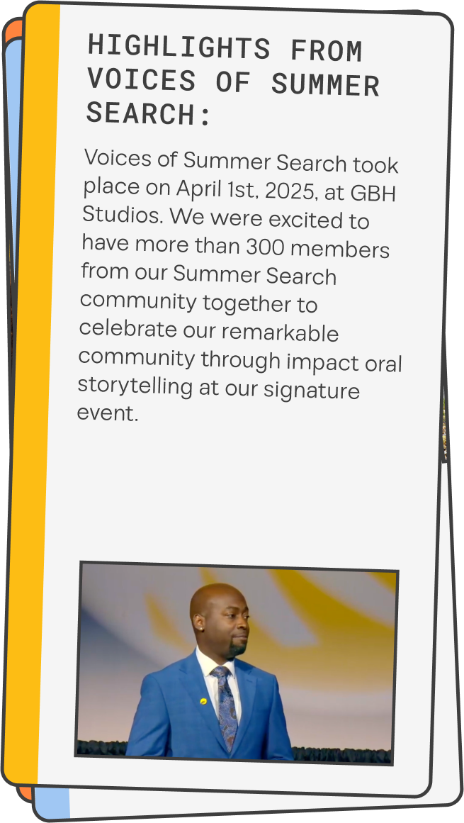 Join Summer Search for personalized mentorship, fully funded summer experiences, and a network of support as you shape your future. Your path to possibility begins here!