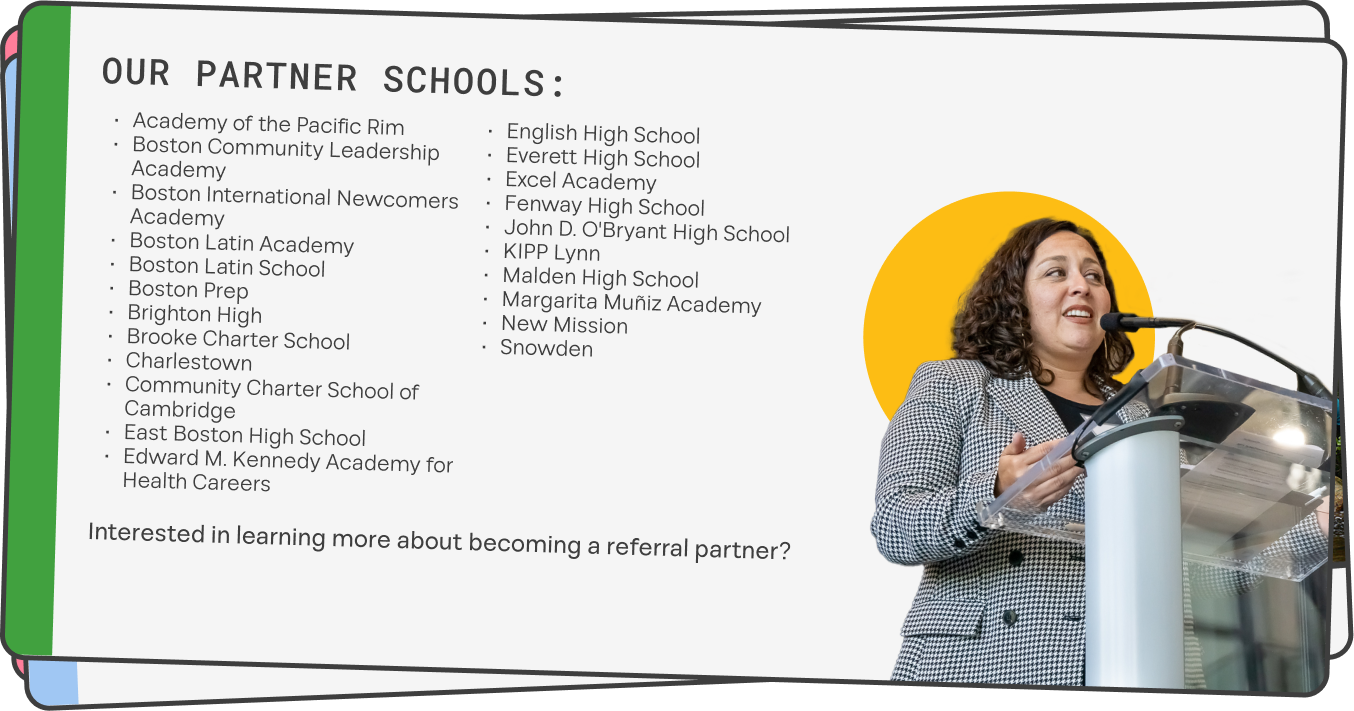 Summer Search works with organizations across Boston to provide talent recruitment support and connect Summer Searchers to internship opportunities. Our intern partners access a pool of more than 350 Summer Search post-secondary students and support their corporate responsibility goals and employee engagement with student-facing and other volunteer opportunities.